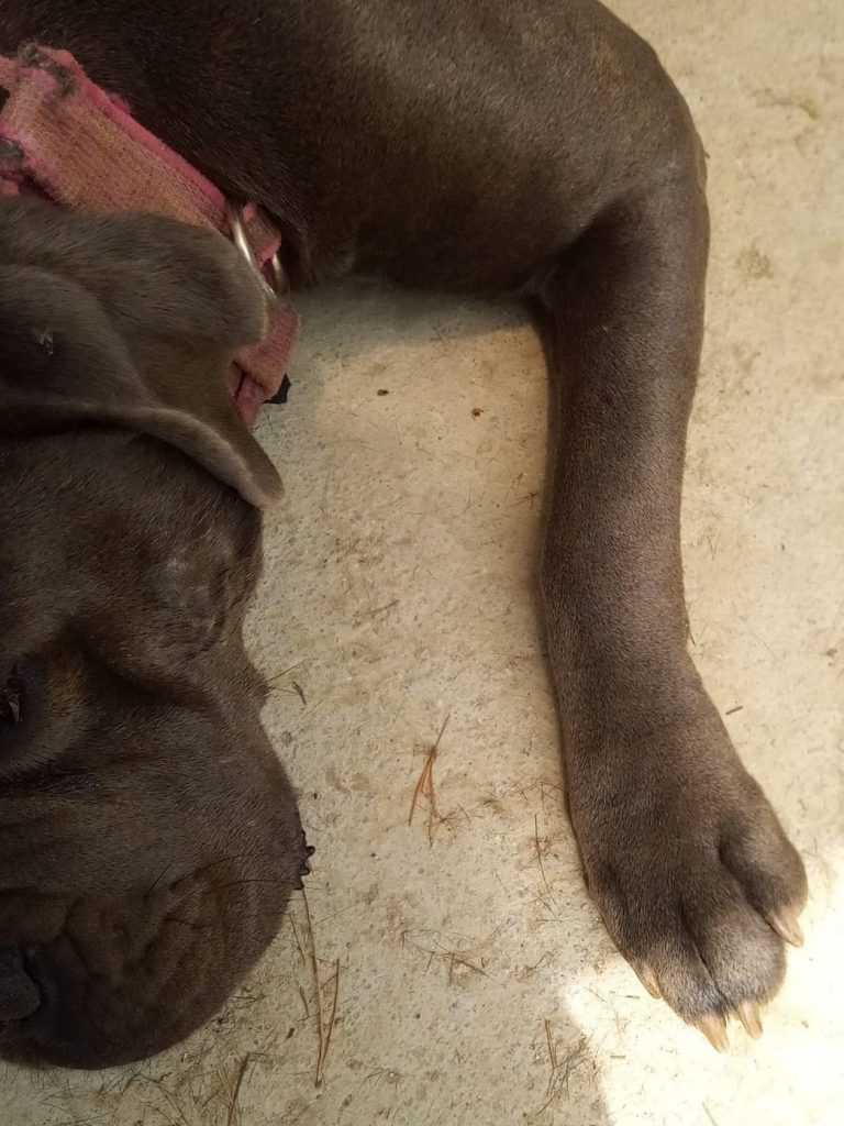 2. Sujeta la extremidad firmemente: Con tu mano izquierda (si eres diestro), comprime cada dedo del perro para exponer las uñas.