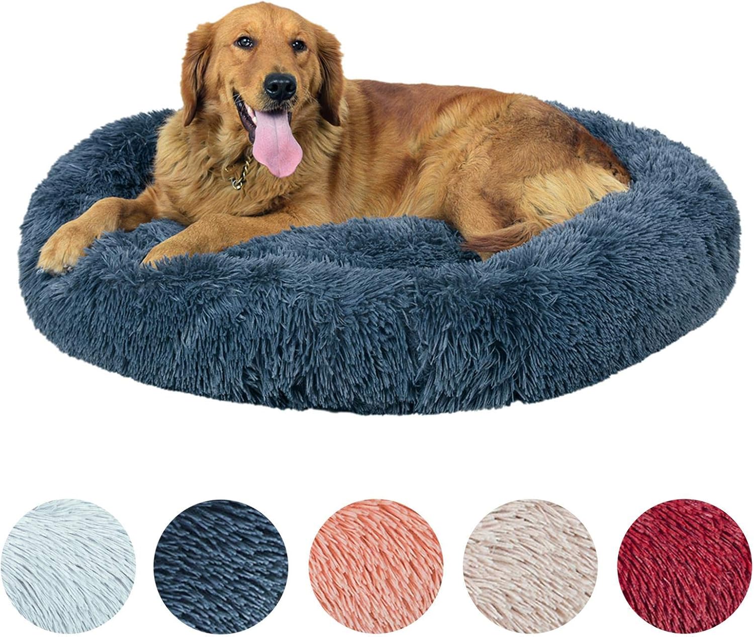 Cama de perro grande redonda: Cama antiestress con banda antideslizante y lavables. Tamaño 90 a 120 cm.
