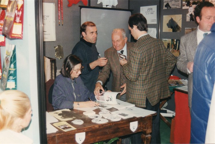 «En Seveso, a finales de septiembre de 1993, el Cane Corso consigue la prueba que consagra su título, con la presencia de los jueces de Bernini, Bonetti y Vandoni. Casi un centenar de Cane Corsos bajo el cielo de Lombardia!